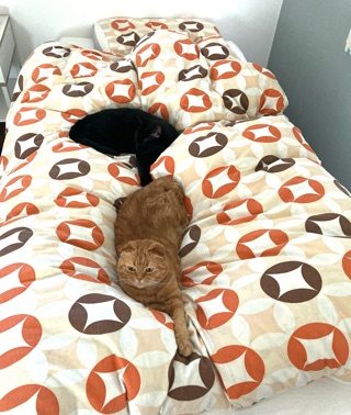ケージには大人しく入ったし、ベッドで気持ちよさそうに寝るし、