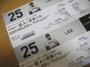 ジャイアンツのチケット落札できて届いた、しかも定価で落札できた~!