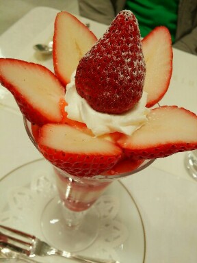 青森中三にきてた資生堂パーラーの苺パフェ!