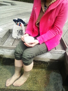 足湯しながらカフェラテを飲むという、まあなんておサレな休日。
